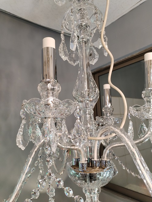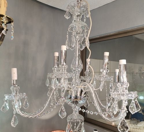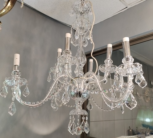 ESTA LÁMPARA PERTENECE A LOS MODELOS MARIA TERESA QUE SE CARACTERIZAN POR SER FABRICADAS CASI COMPLETAMENTE DE CRISTAL TANTO EN SU CUERPO CENTRAL COMO LOS BRAZOS Y LOS ABALORIOS QUE LA DECORAN , CON ROSARIOS DESDE SU PARTE SUPERIOR HASTA LOS BRAZOS , TAMBIEN LOS CUBRE VELA DE LOS SOQUETES SON DE CRISTAL , ESTE MODELO VIENE DIRECTAMENTE DE REPUBLICA CHECA DE LA FABRICA PRECIOSA .